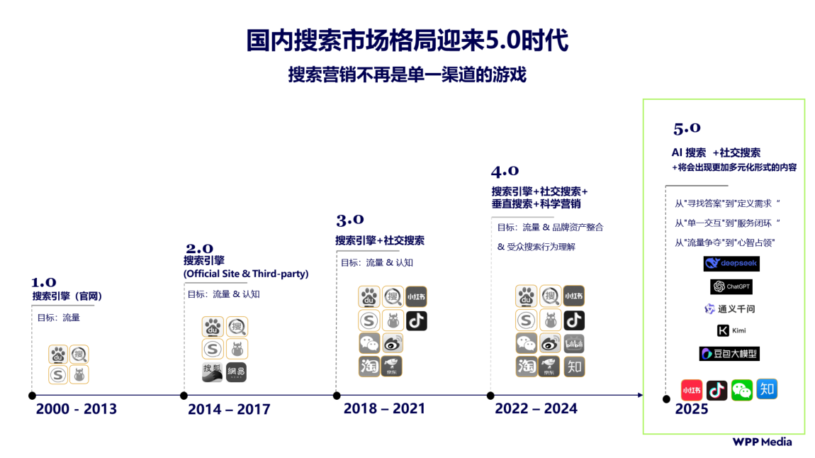中国搜索市场已步入5.0时代,传统搜索引擎、社交平台、电商平台与AI工具形成多元化搜索格局。在今年,AI搜索用户增量已超越其他平台,成为最具潜力的搜索端口。