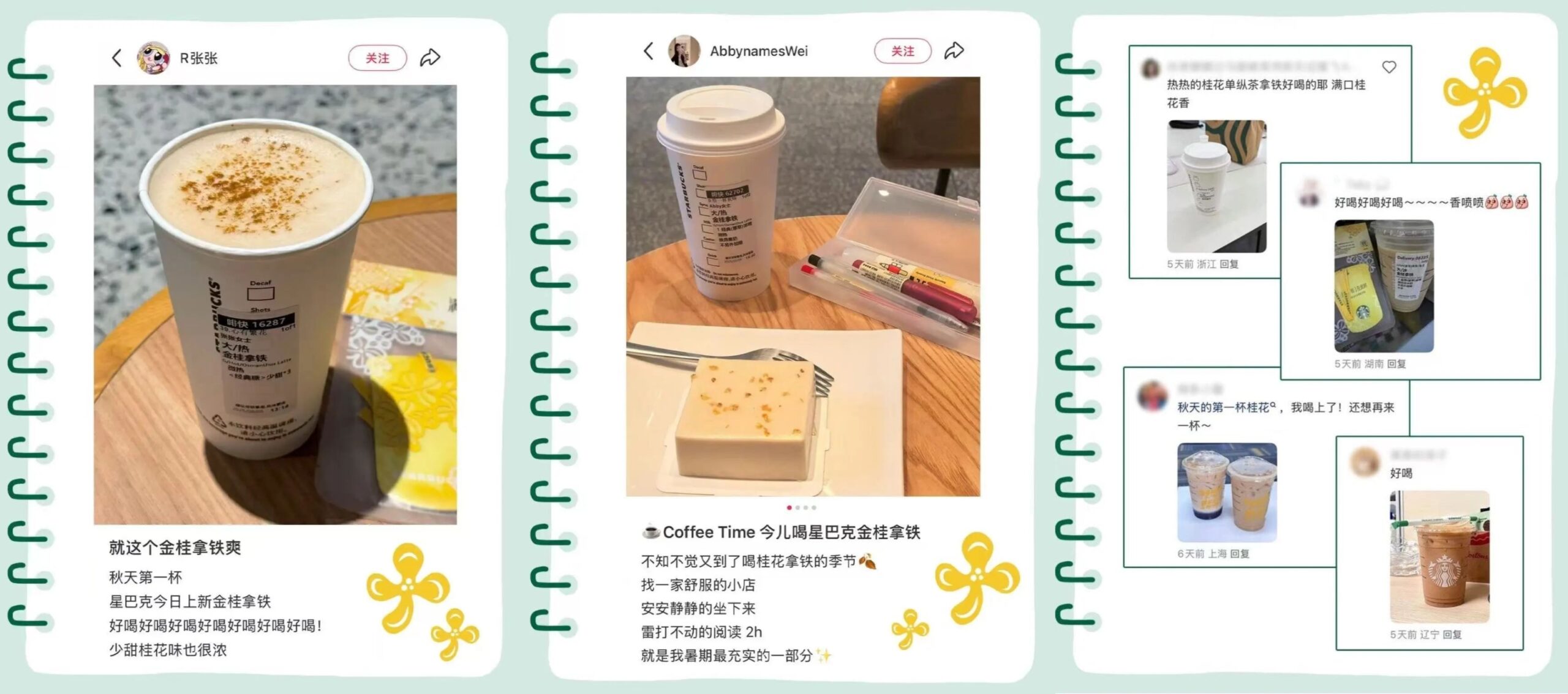然而,如果联名思路只到这里,可想象出的玩法仍旧有限——杯身、杯套、包装袋,这三样都是老“联名展示模特”了。联名模式已然固化。打破这种僵局的,是星巴克引入的一个关键“中间人”——桂花。