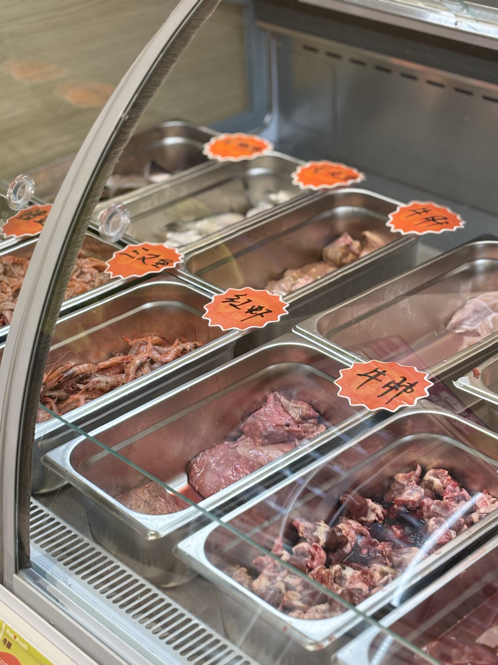如果说盒马重新定义了“人怎么吃”,派特鲜生则在探索“宠物怎么吃得像人”。门店现制鲜食区,三文鱼和秋葵摆得比盒马工坊还精致,恍惚间还以为进了日料店。
