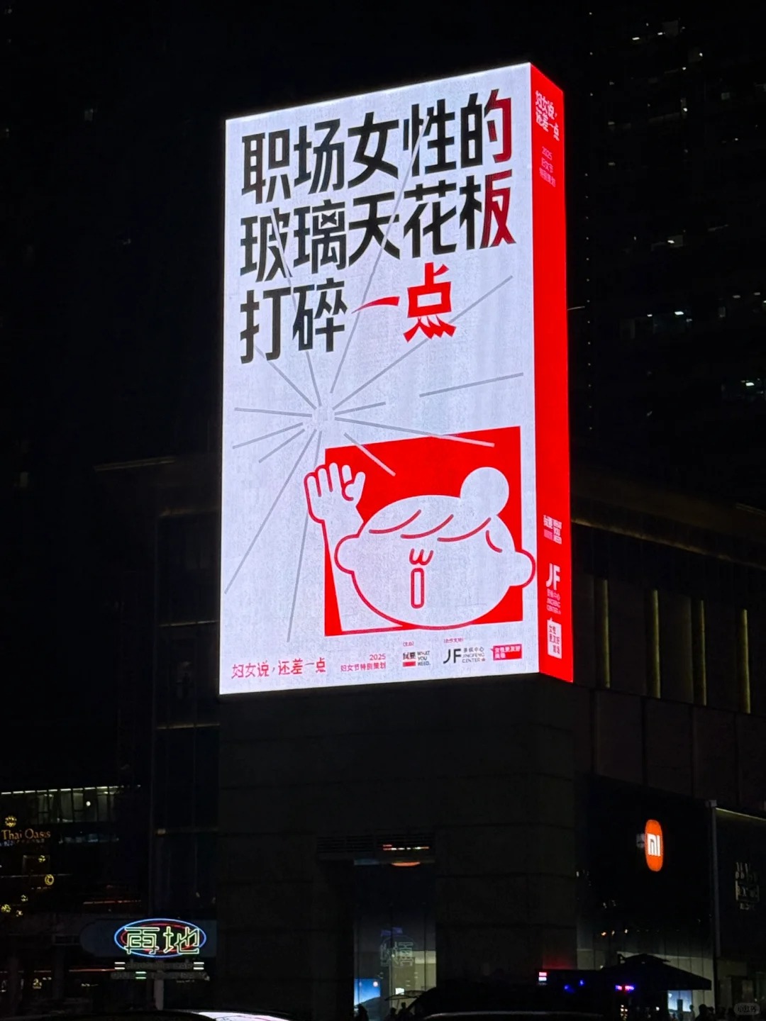 类似口号和行动在很多商业综合体中被复制。比如,合肥坝上吾悦广场把“致合肥女性,祝你昂扬,祝你铮铮”打在公屏上,河南信阳西亚城说:祝你成为不用独自面对隐形家务的女性;祝你成为敏感一点也无妨的女性;祝你成为优先考虑自己感受的女性……