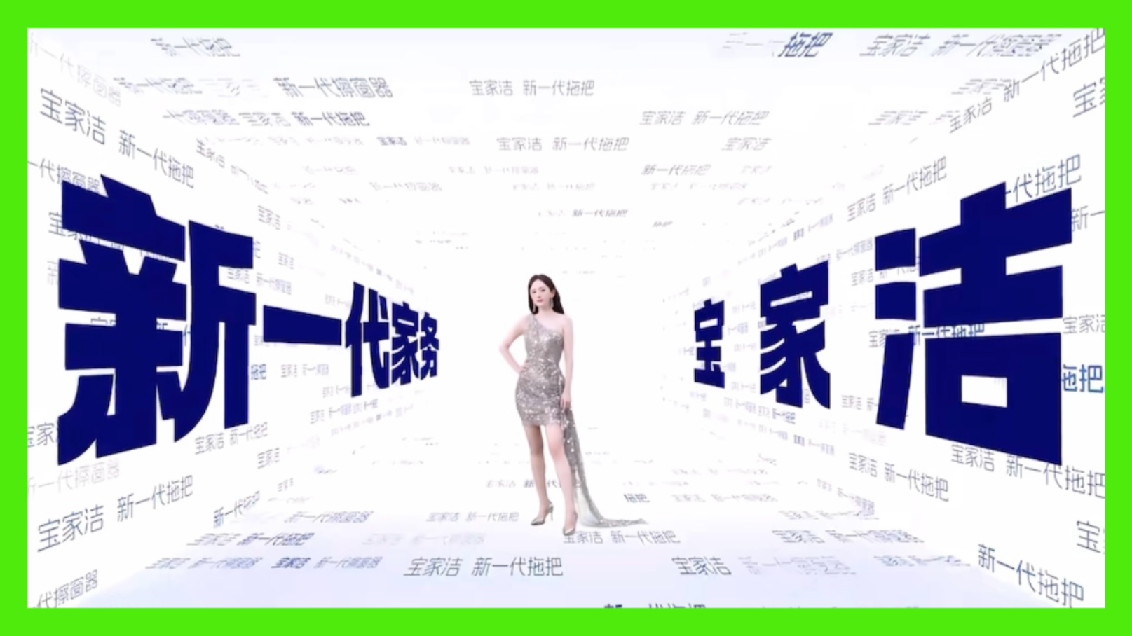 她与宝家洁合作的TVC延续了她标志性的洗脑风格:在一分钟时长里,密集展示了拖把、擦窗器、扫把等全系清洁产品。