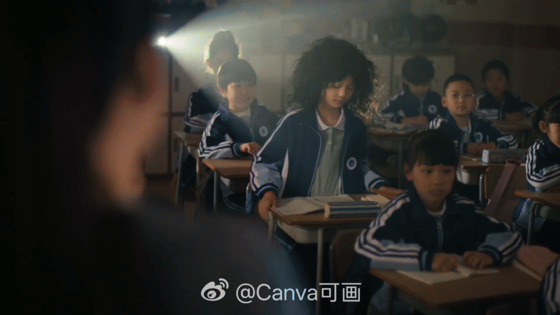 在广告片上,Canva 用近乎白描的手法讲了一个故事:小女孩悠悠因为天生卷发而自卑。后桌的小男孩小可察觉到了这一情绪;在一次主题演讲中,小可用 Canva AI 制作了一棵现实中不存在的“卷卷树”,以稚嫩的视觉语言,无声地向悠悠传递在他眼中卷发“独一无二的美好”。