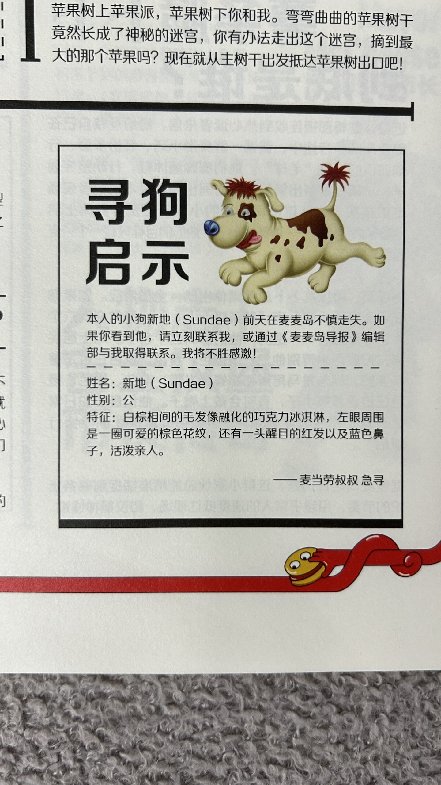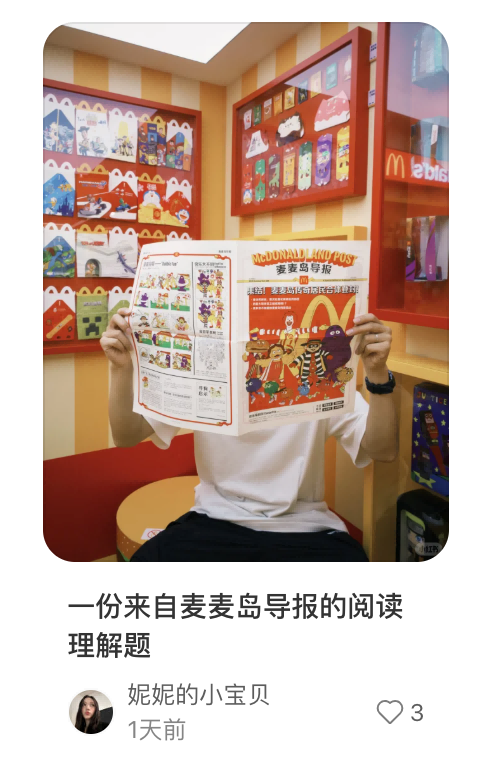 在社交媒体、APP及门店互动之外,麦当劳特别推出了全新互动形式——「麦麦岛导报」,借用报纸的叙事方式,用童趣幽默的风格还原麦麦岛的价值观,强化与粉丝的情感连接。它以优质内容为原点,承载人物介绍+故事讲述+攻略+意见征集+投稿+寻物+游戏等多重功能,小狗新地的寻狗启示,即从这里发出,并很快收到回音。