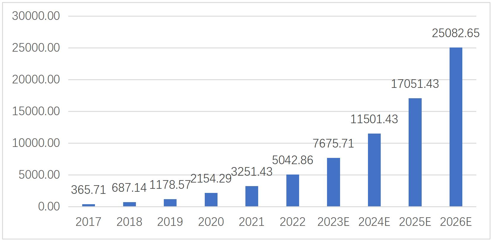 2017—2026年即时零售市场规模(单位:亿元)/《即时零售行业发展报告(2023)》