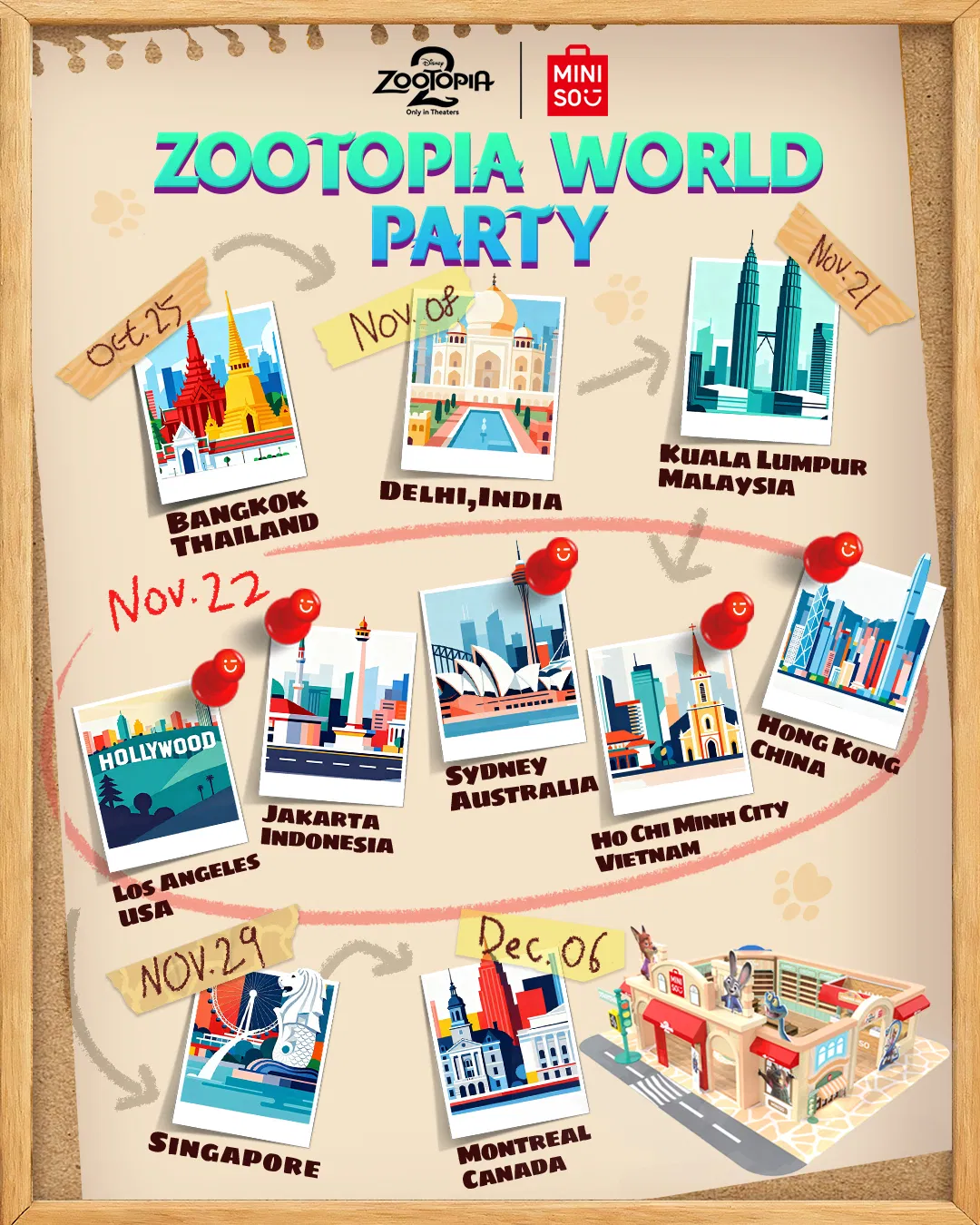 《疯狂动物城2》是名创优品与迪士尼深化全球合作的关键里程碑。品牌不仅一次性推出覆盖全品类的上百款新品,更巧妙利用电影角色体型差的记忆点,将“MINISO”与“MINI MINISO”的门店标识,以契合世界观的方式植入电影画面。