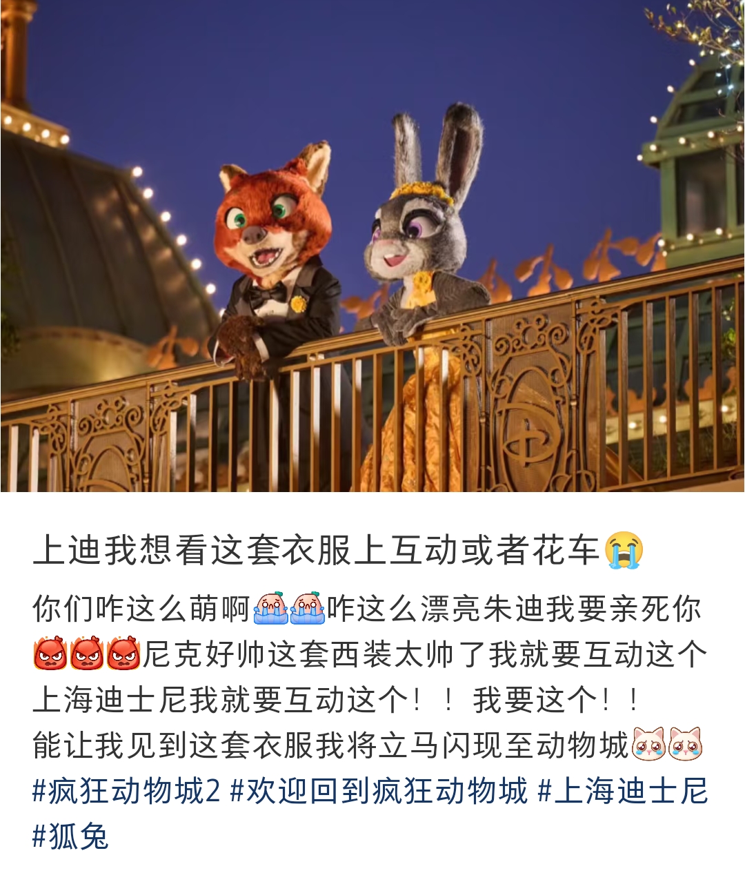 在《疯狂动物城 2》上映后,上海迪士尼乐园的流量也冲上顶峰;而就在月初,乐园 9 年游客总量正式突破一亿人次。城堡下,粉丝们热情等候为电影全新换装的朱迪与尼克。市场的热烈反馈,即时印证了这份长期资产的不断升值。