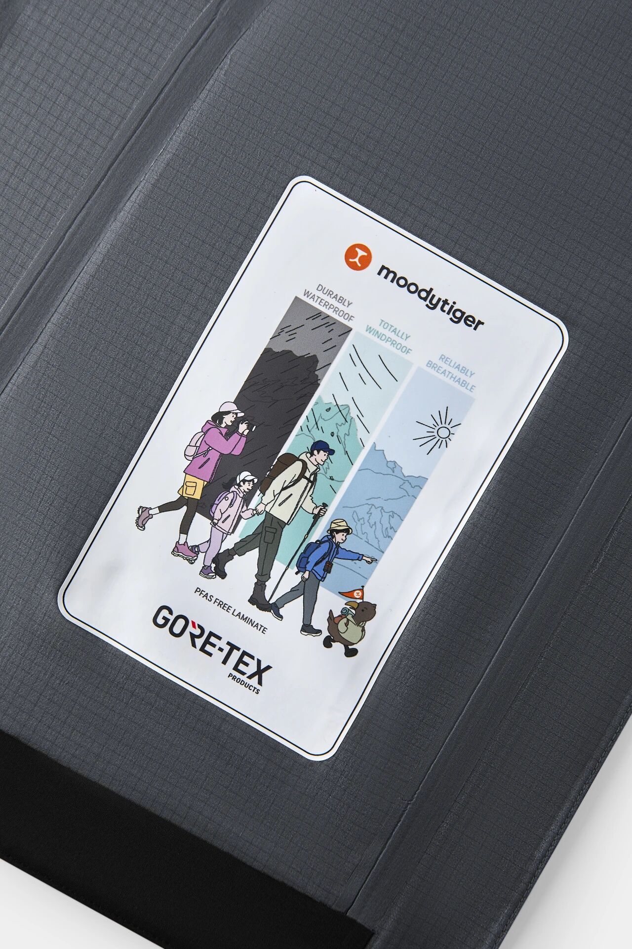 一切舒适首先建立在“口咽级”的绝对安全之上。在含氟冲锋衣充斥市场的当下,moodytiger 坚持采用无氟拒水技术,从源头规避风险。