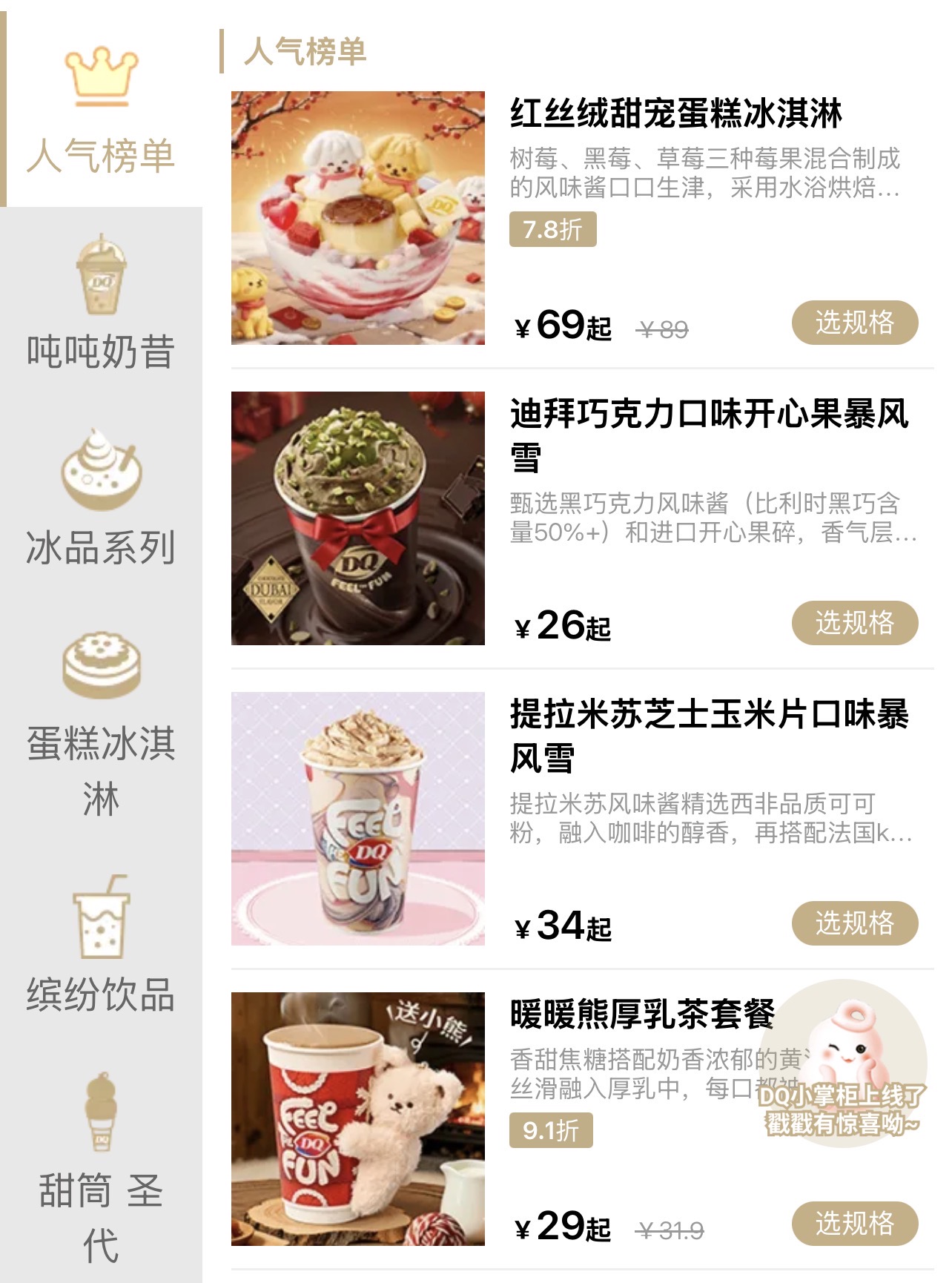 DQ品牌LOGO还是熟悉的配色,但是DQ门店的陈列和DQ点单小程序早已翻了新花样。2025年,DQ共推出超过150款新品。其新品策略不仅是求快,也在求精,据悉,2025年其新品在全年销售总额中的占比超过60%。