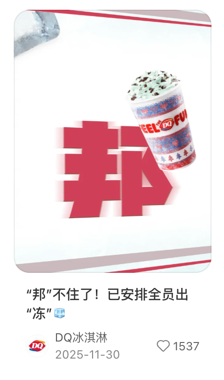 2025年,DQ第四季度的销售额几乎与第三季度相当,这打破了冰淇淋品类只有夏季才是销售旺季的印象。这一成绩得益于高频上新的节奏、对于节庆需求的捕捉。