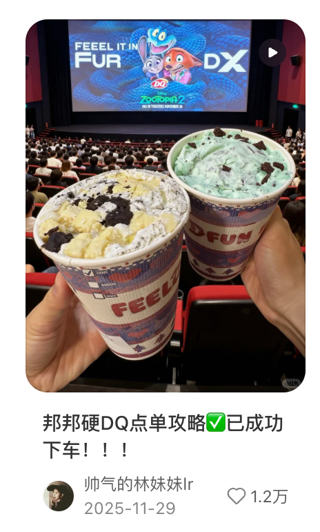 还有一个意外的偶然因素,是年轻消费者发现带邦邦硬暴风雪看《疯狂动物城2》是一种顶级消遣,这一发现在互联网成为热贴