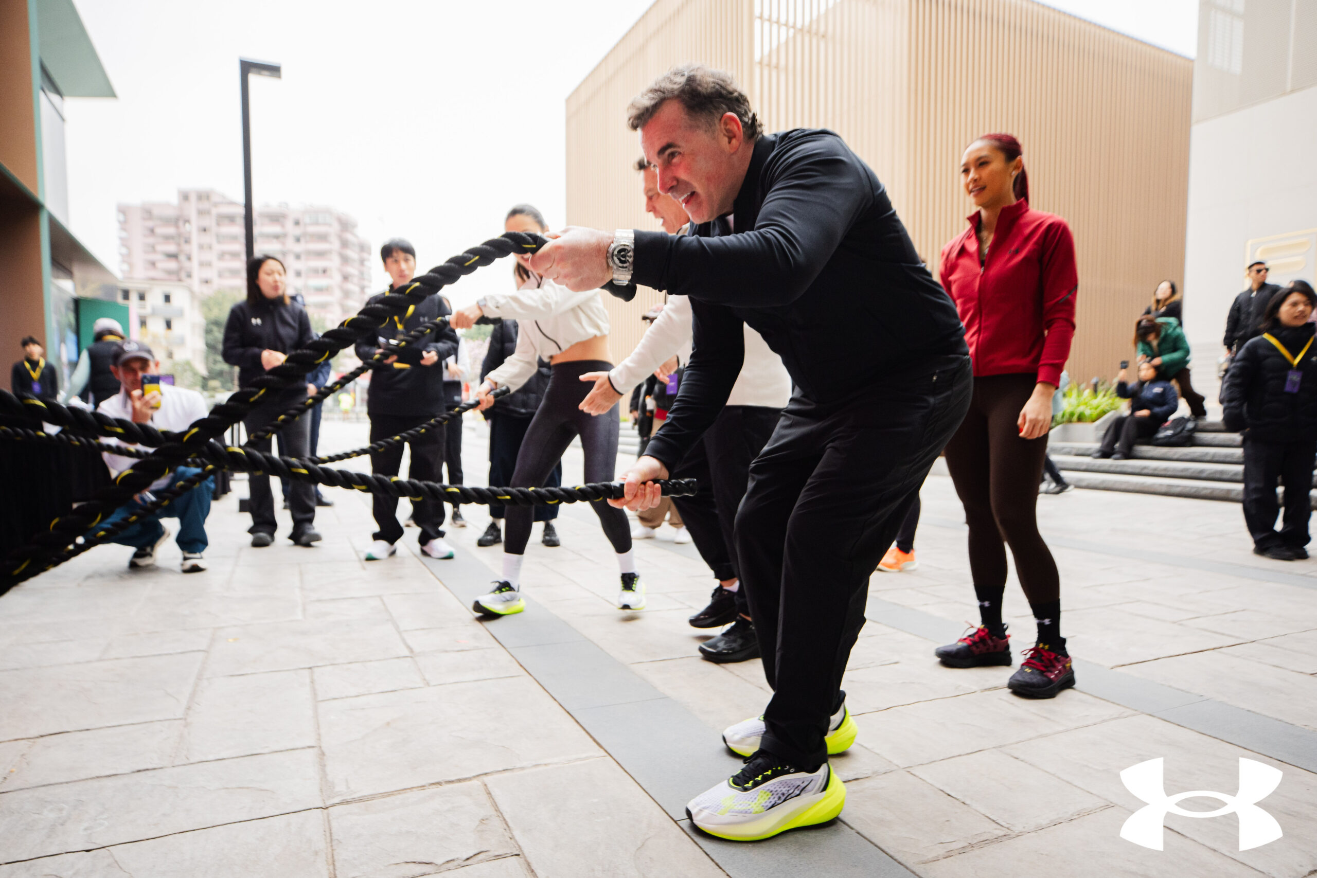安德玛总裁兼首席执行官凯文·普朗克(Kevin Plank)携亚太区及中国高管团队齐齐亮相,助威会馆开业,还在火热的运动氛围感染下,纷纷加入本地运动社群,同场开练;也趁势向更多广府运动达人发出号召,来安德玛广州热练会馆试炼装备、碰面切磋,用专业的装备让运动更加“威”风凛凛,在热血的社群里找到可以“一齐”享受运动快乐的队友,真正做到“入嚟一齐威”!