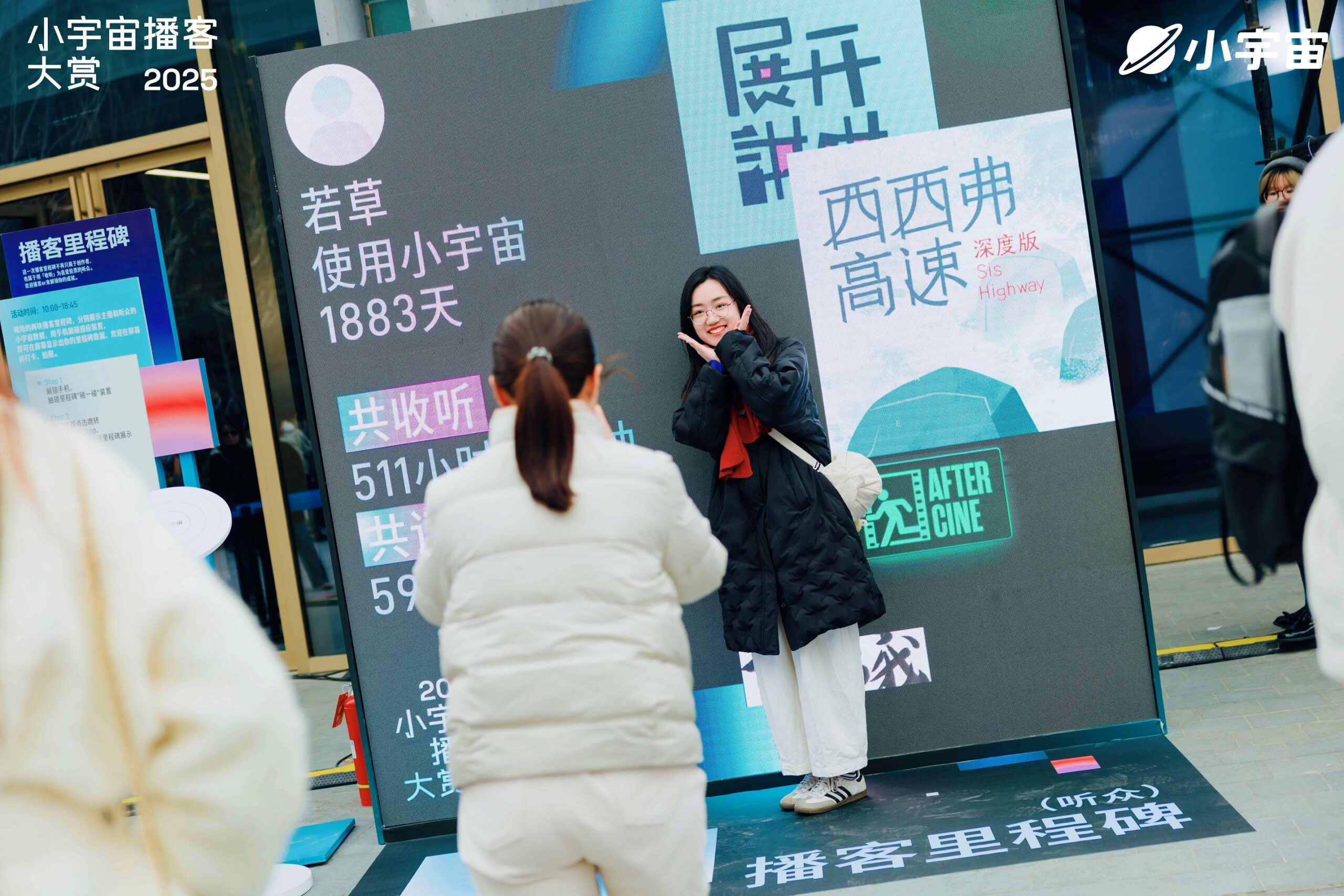 现场设置「播客里程碑」互动装置,听众与主播都能生成自己的专属里程碑。在各自的坐标上,每个人都能看见自己与播客的关系如何被标记。