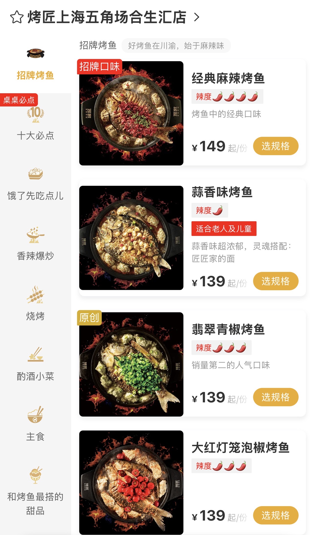 根据美团的数据,烤匠上海首店当前的人均消费在 110 元,略高于其他连锁烤鱼品牌,略低于海底捞。