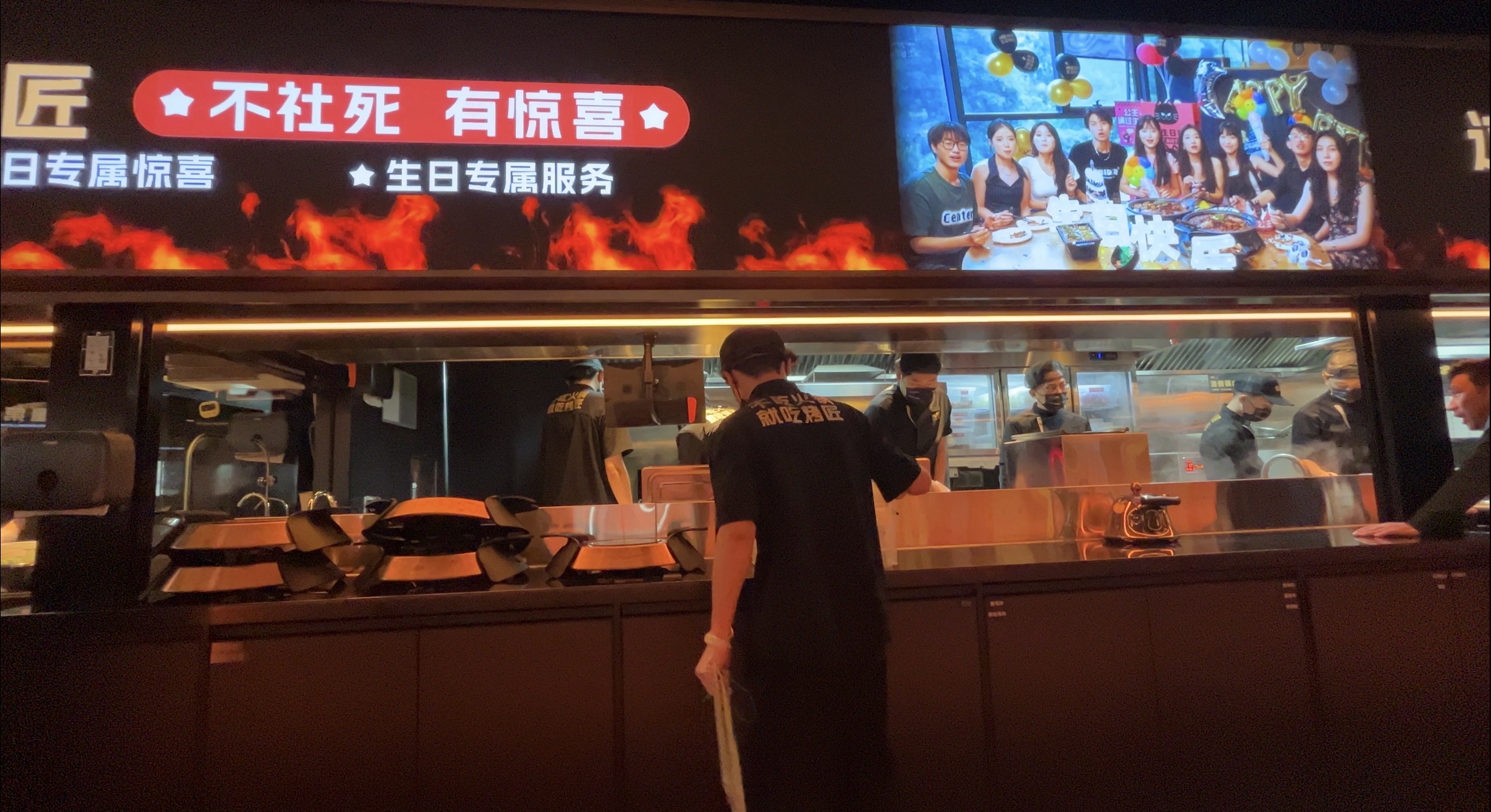 在门店里,你很难不注意到“生日仪式”。虽然“师从海底捞”,但也发展出了烤匠的一大特色,其生日服务打出的口号是「不社死,有惊喜」,不大张旗鼓(跟海底捞反着来),但会提供小范围、精致的服务。