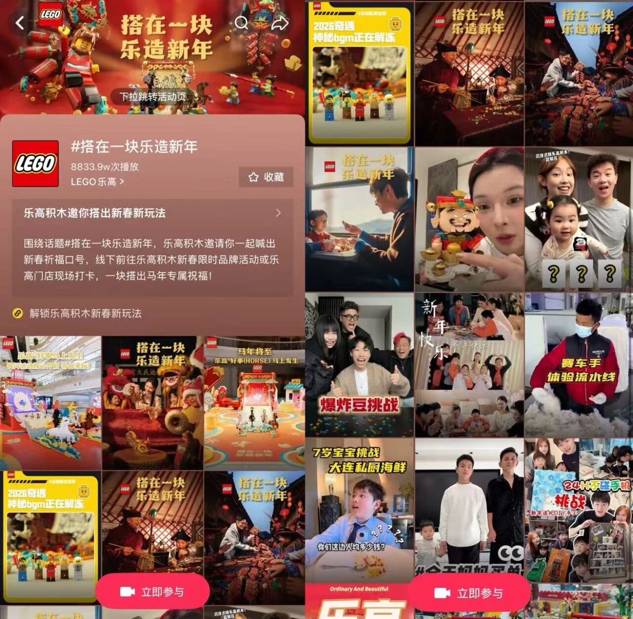 发自真心的体验,在社媒上已经转化为海量优质 UGC,大大提升了新春心智中乐高®品牌的参与度与认知度,让线下人气反哺线上声量。