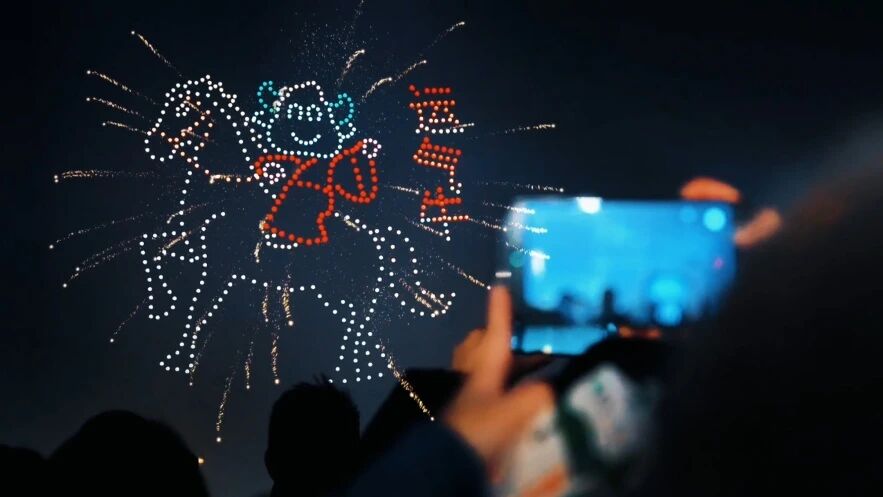 流量的“物理牵引”: 无人机秀不仅是高空的品牌亮相,更起到了“视觉灯塔”的作用。通过视觉重心的指引,精准地将园内分散的人流导向品牌线下展位,完成了从“线上惊叹”到“线下体验”的物理转化。