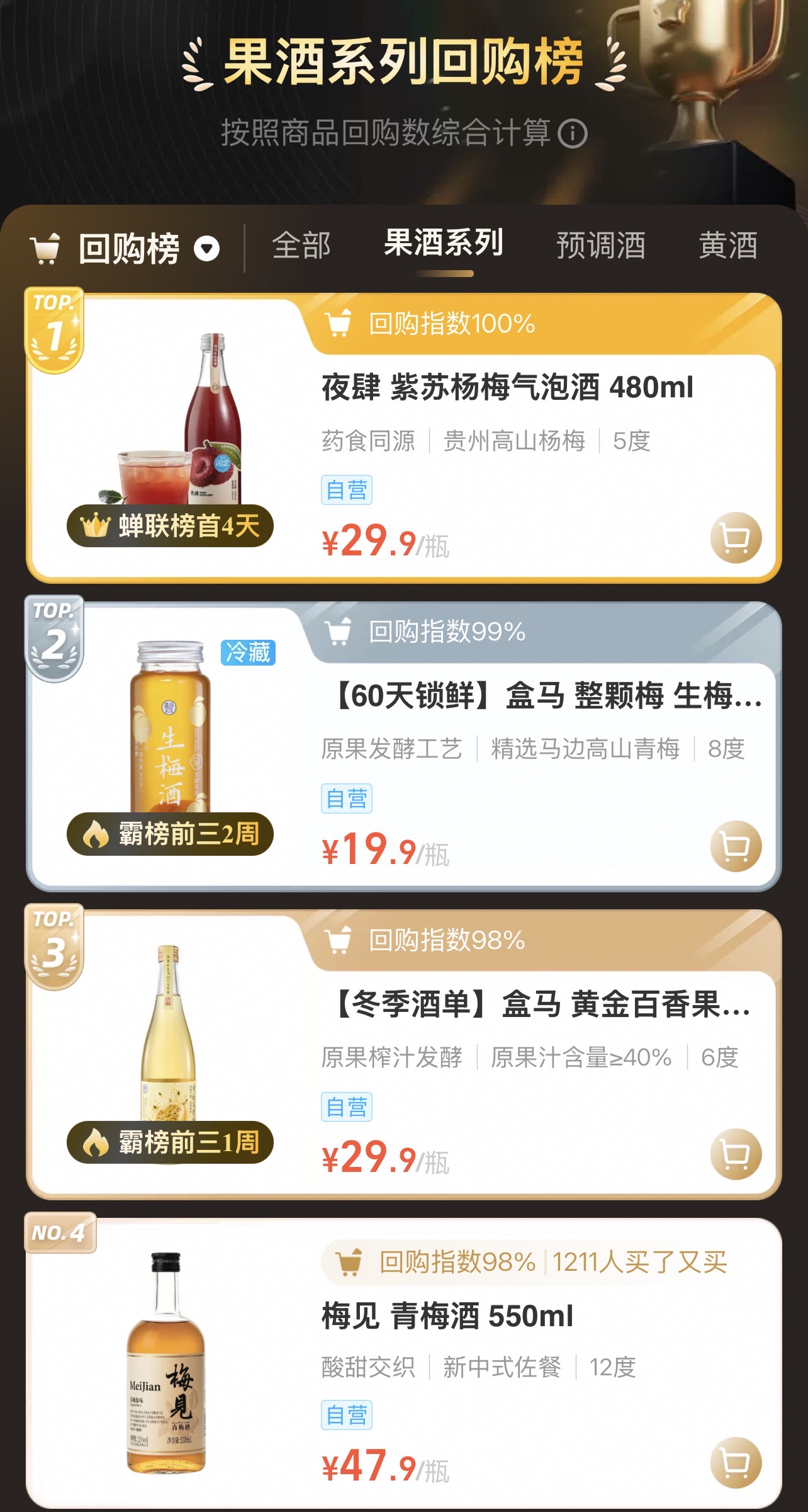 盒马果酒回购榜