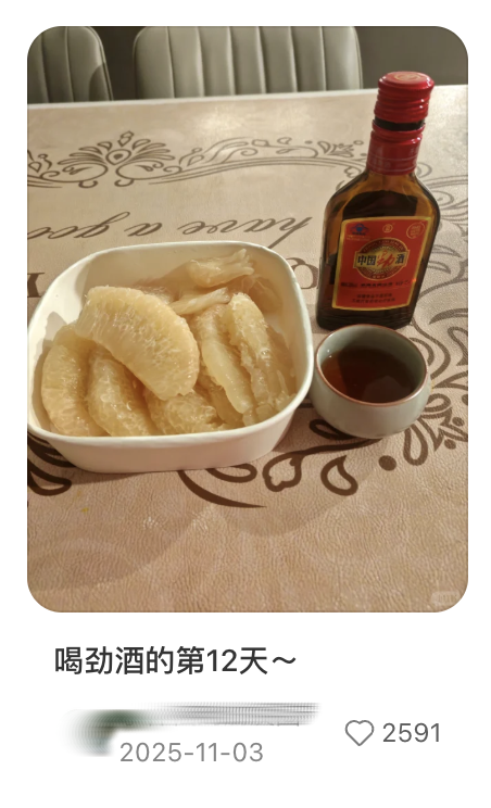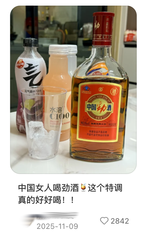 “劲酒+”调酒视频走红,直接转化为红标劲酒的市场热度。劲牌公司总裁王楠波在2025年10月提到,劲酒全年增长20多个点,“过去两年,劲酒新增18~30岁的年轻消费者900多万人,其中,新增的女性用户就达400多万人”。