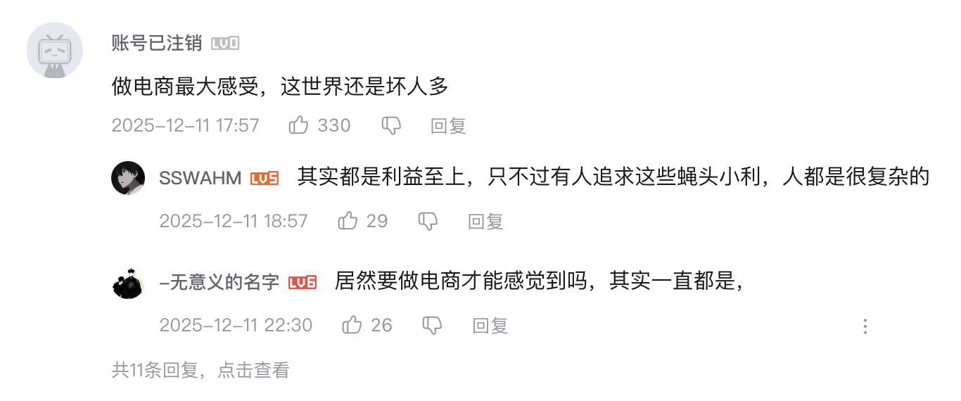 某网友在影视飓风视频的评论区如此写道:“做电商最大的感受,就是这个世界还是坏人多。”
