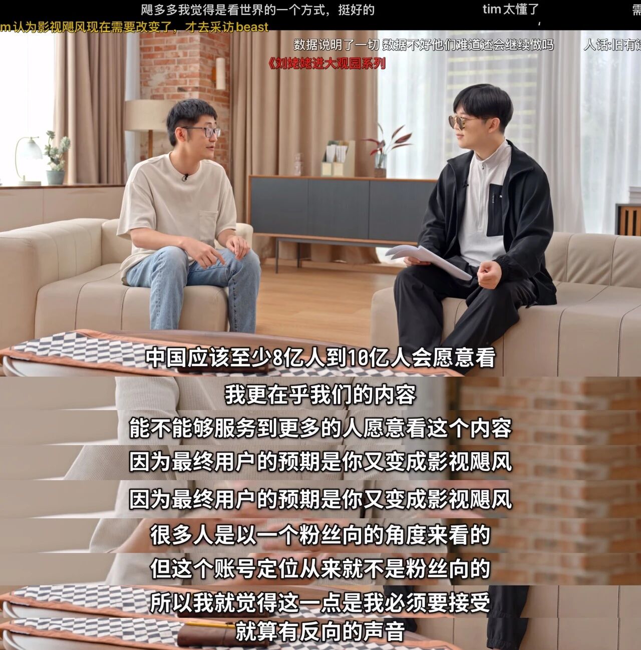 吸引更广泛的大众流量:“飓多多 StormCrew”创立之初是因为影视飓风的受众已经快到上限,它定位娱乐向短视频,不想成为影视飓风的子账号,或者说粉丝向的账号。Tim曾测算,中国约有 8 亿- 10 亿人对这类综艺化内容感兴趣。