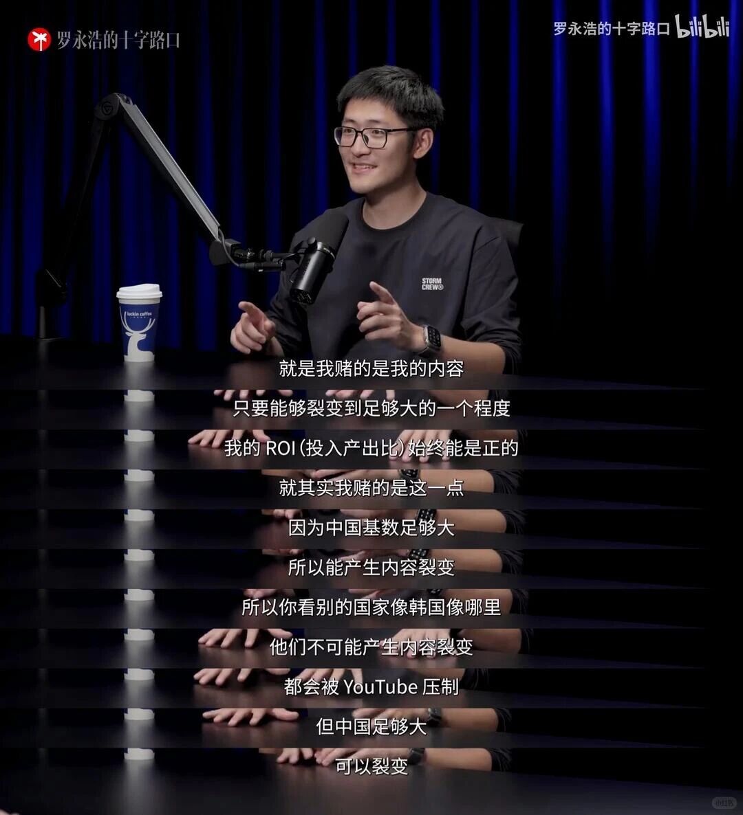 但在他看来,海外内容生产者不可能产生内容裂变,会被 YouTube 压制,但中国基数足够大,可以裂变。