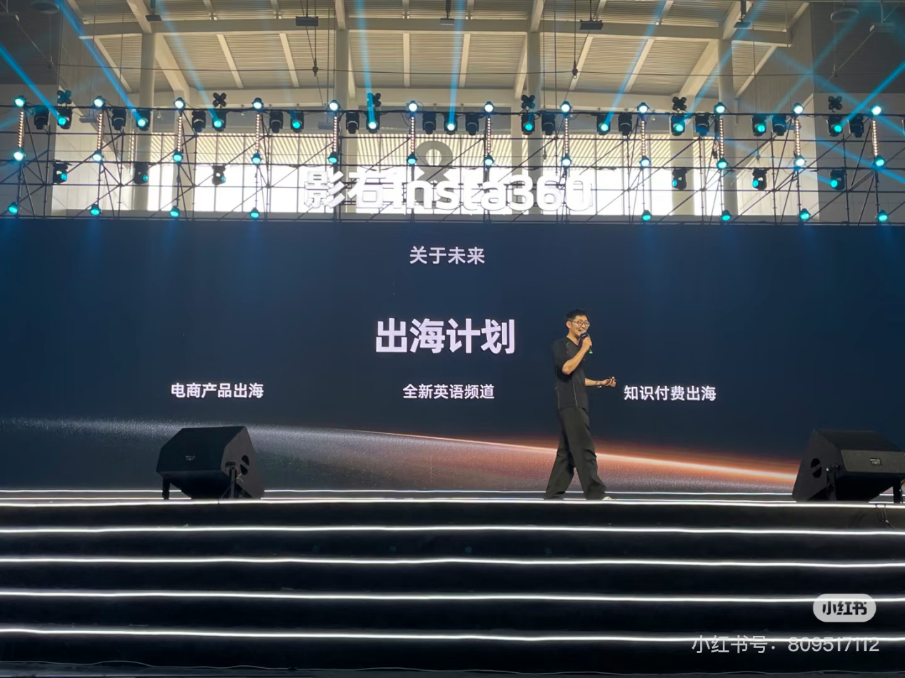 在去年的影石 Insta 360 年会上,Tim 公布了未来的出海计划,其中包括:电商产品出海、全新英语频道、知识付费出海。