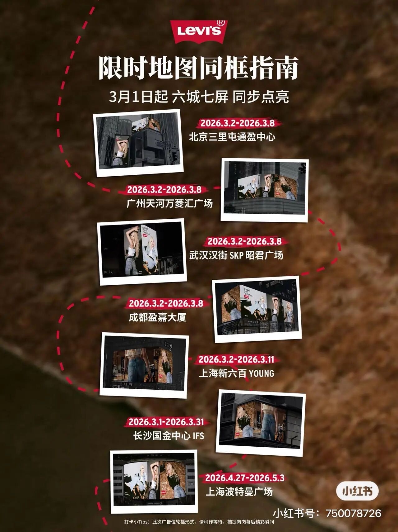 3 月 1 日起,ROSÉ 地广六城七屏同步点亮(中国大陆地区)