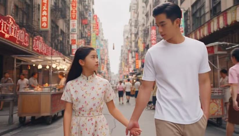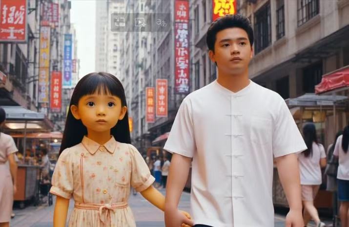 比如小编曾经输入“一个女生,长发,身高1米66,民国风。男生不戴眼镜,高智感。男生与女生差不多个子,他们牵手走在香港的街头。要求有浪漫氛围。” 结果第一次生成了如下图片:
