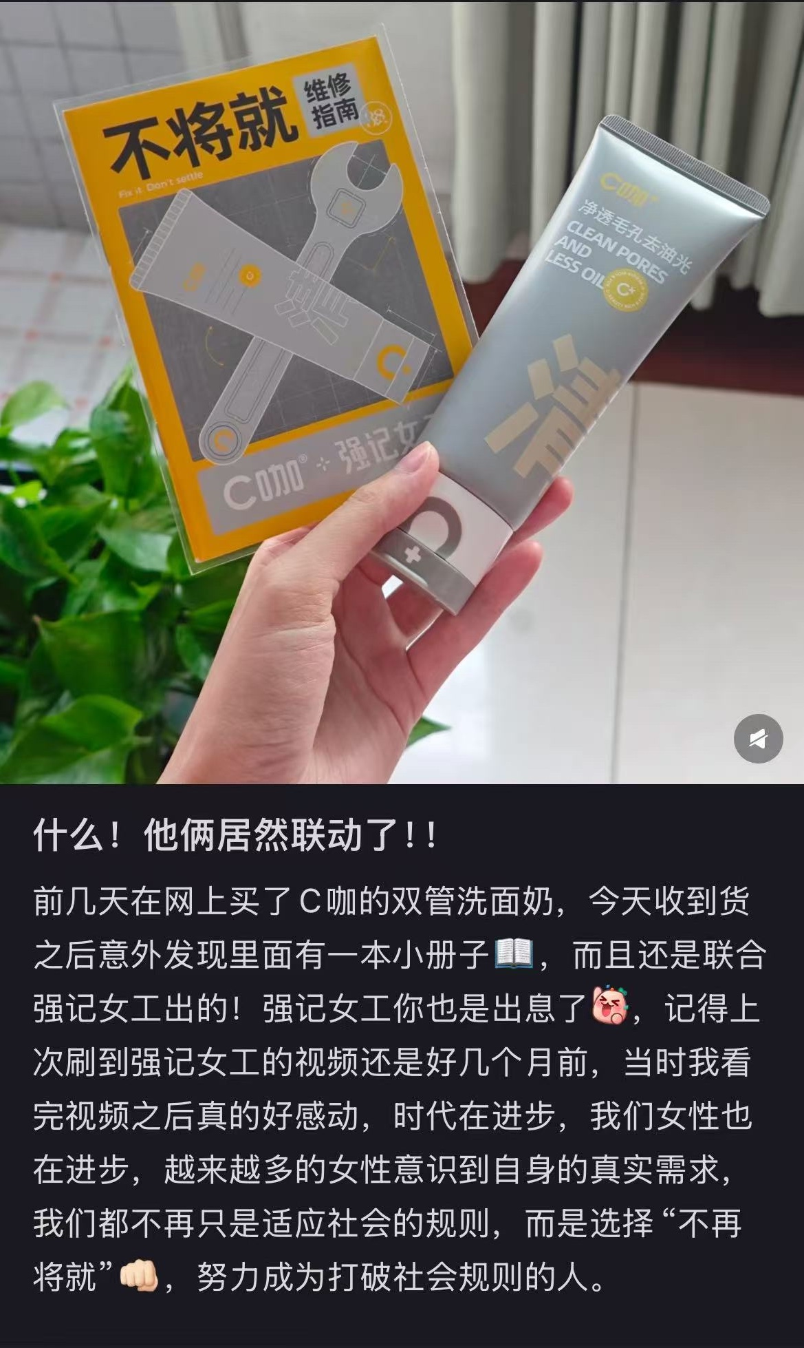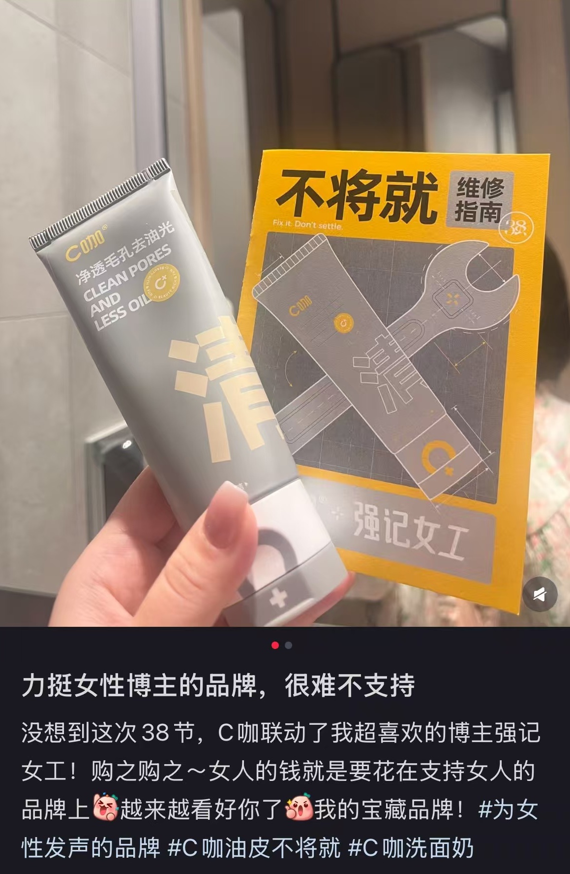 一个是成立于 2021 年专注油皮精准护肤的品牌,一个是诞生于 2024 年致力于让女性拥有安心家修体验的团队,两个看似毫不相关的领域,因为“强的精神”走到了一起。也让人们看到:三八节的表达,除了感性叙事,还可以有更务实的视角。