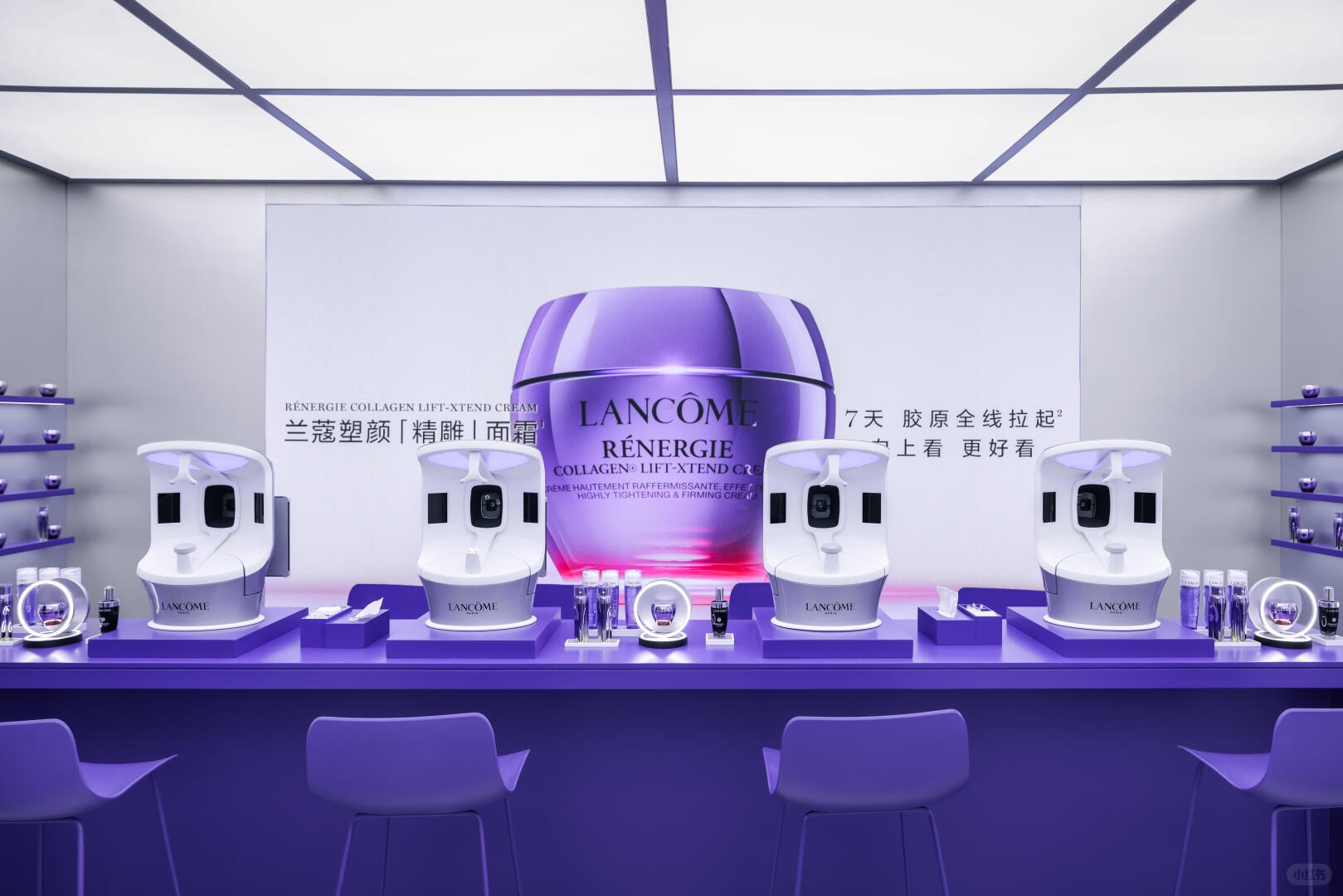 展览出口处的新品“塑颜精雕面霜”体验区,被处理成叙事的自然延伸,是“向上”在肌肤维度的具象表达。