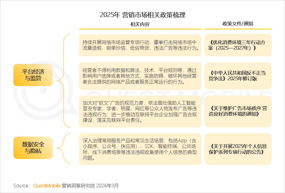 2.1 2025年营销市场政策核心导向为“合规提质、精准监管”,政策聚焦数据安全、广告规范等维度,为品牌营销提供了清晰的合规指引与发展方向