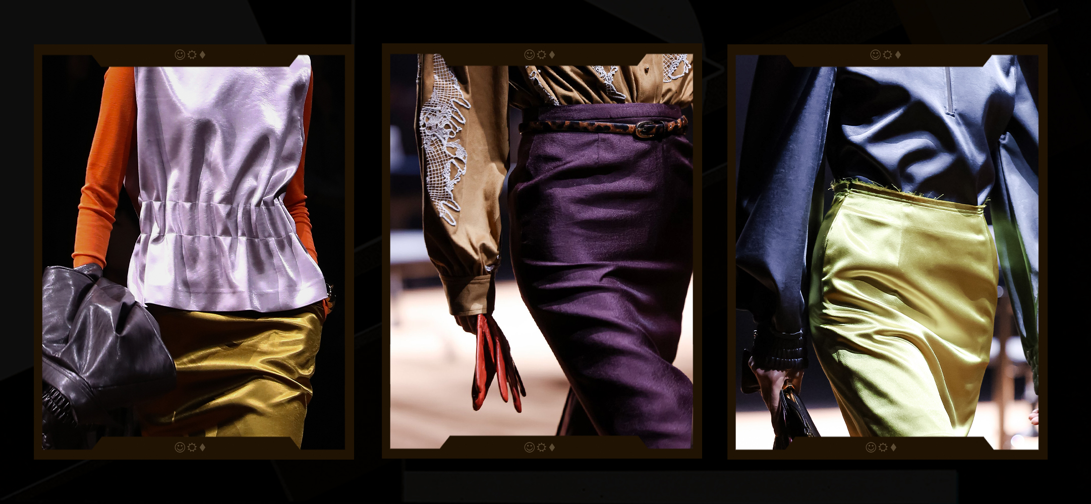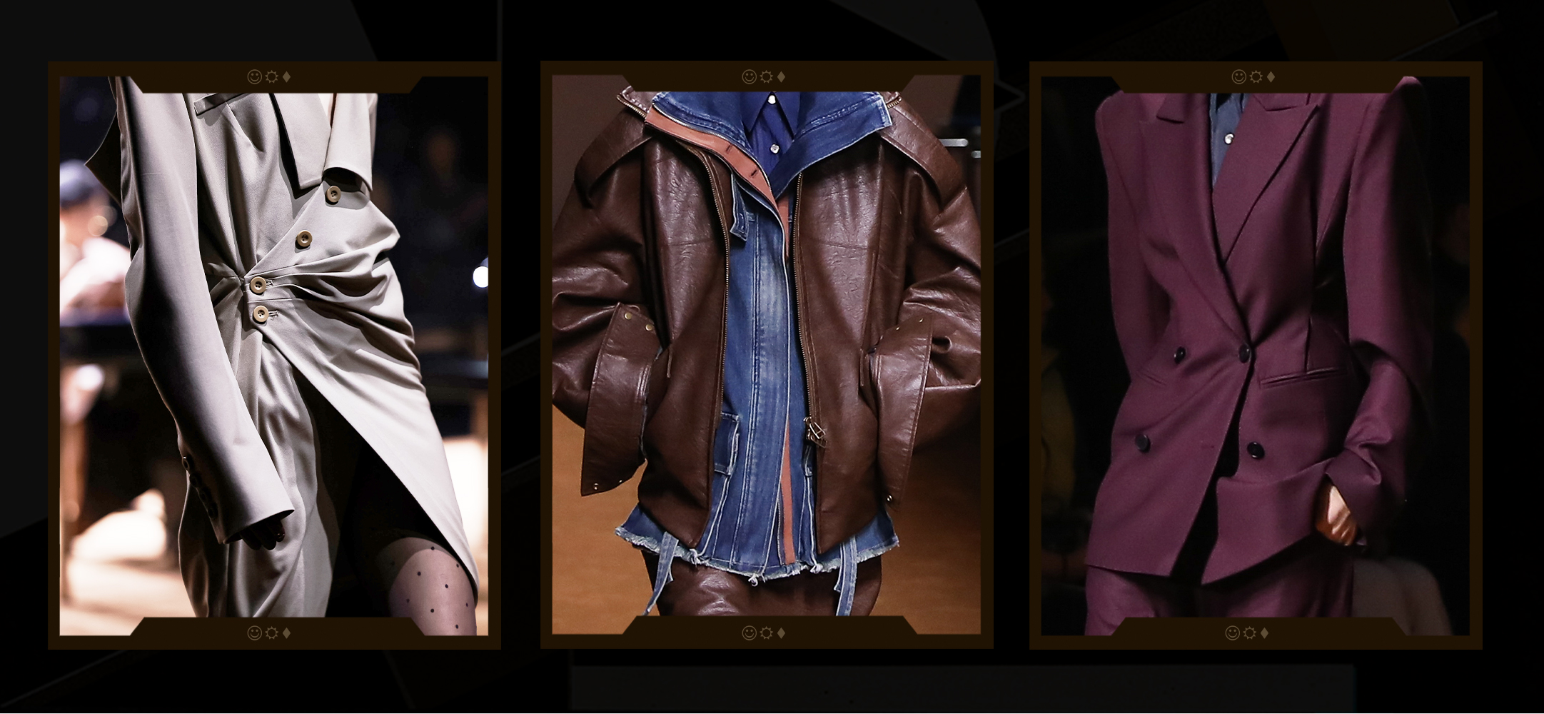 色彩在权威与叛逆的边界游走,炭黑、羊皮纸白与深海军蓝与燕麦灰,构筑起冷静的职场叙事,暖调灰褐与赤陶土悄然注入80年代的体温。本季破格融入鲜亮色块,碰撞刻板规条的桎梏,让鲜活自我冲破压抑气场,点亮属于职场女性的自在光芒。