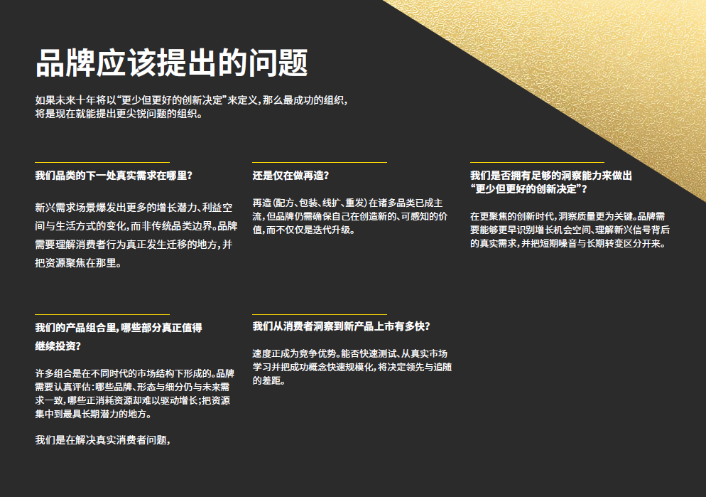 如果未来十年将以“更少但更好的创新决定”来定义,那么最成功的企业或者品牌,将是现在就能提出更尖锐问题的企业。