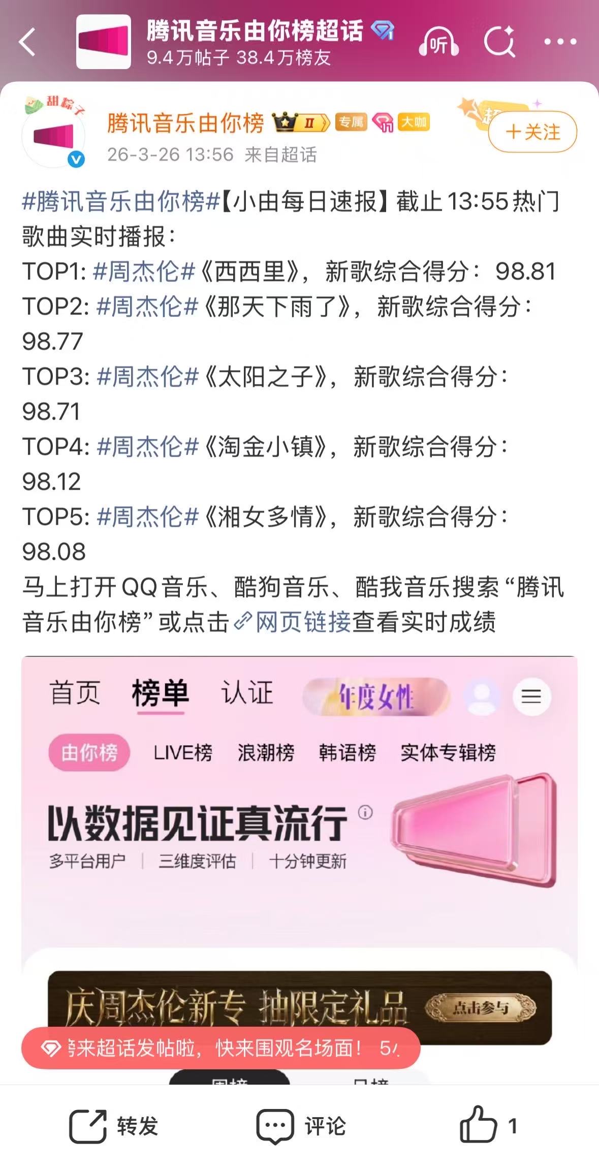 另一边,咪咕音乐上线买专辑送一年会员的优惠,腾讯音乐推出实体周边:NFC珍藏卡、纪念勋章、实体歌词小卡等,还包下48个城市的74座“痛楼”做应援。