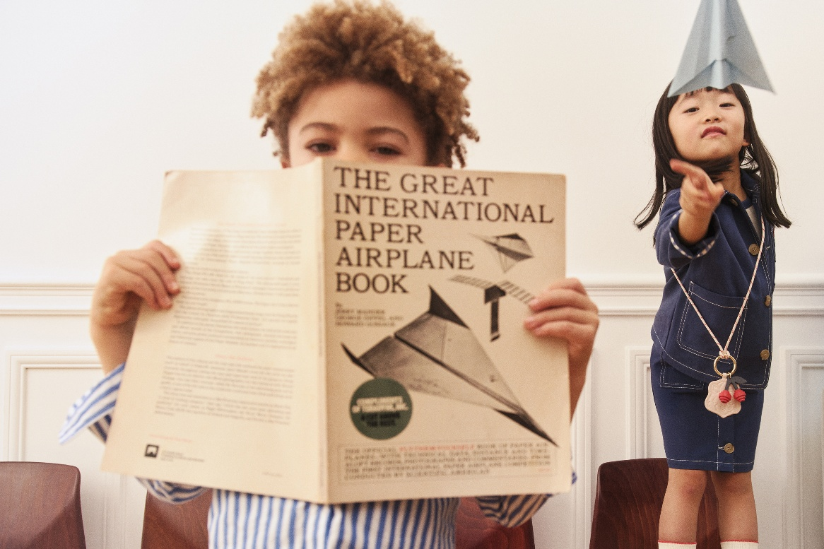从经典制服元素出发,红色刺绣图案为经典蓝白条纹衬衫和连衣裙赋予活力,小狐狸印花跃然衣间,为棉质T恤增添灵动趣味,孩子们在Bonpoint与Maison Kitsuné 描绘的童趣场景中专注思考、自在探索,让学院时光充满纯真想象。
