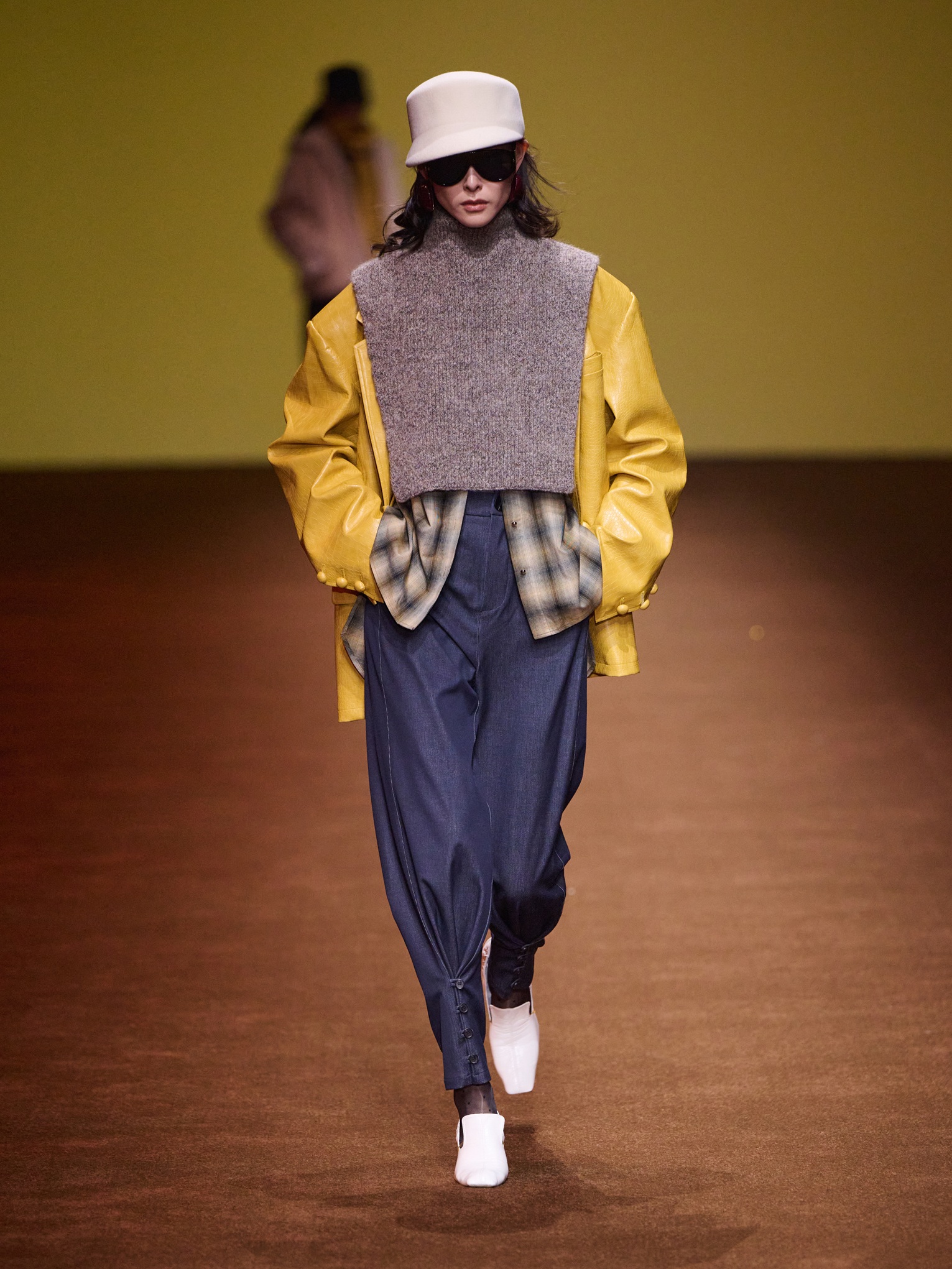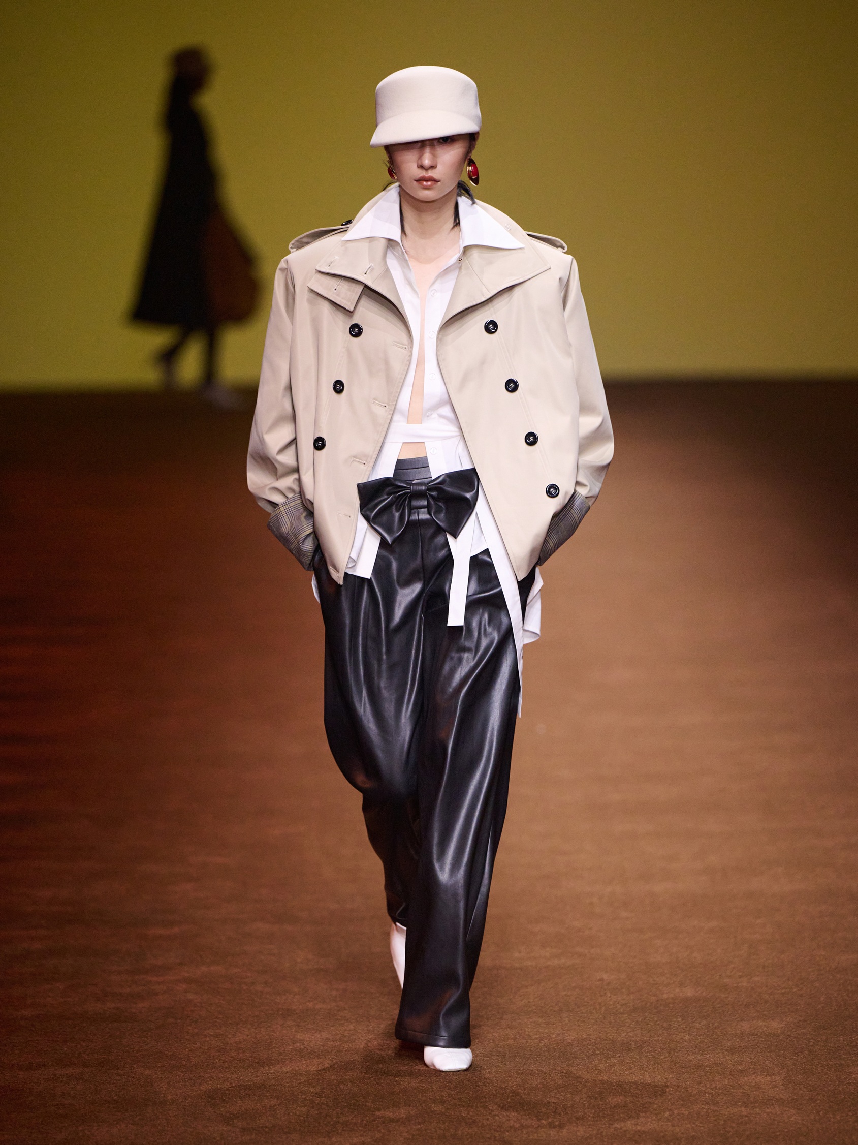 - 荷叶领的力量新生:本季的荷叶领不再是单纯的甜美符号,而是被赋予建筑般的结构感。可拆卸的多功能设计,让这一经典元素焕发新生。