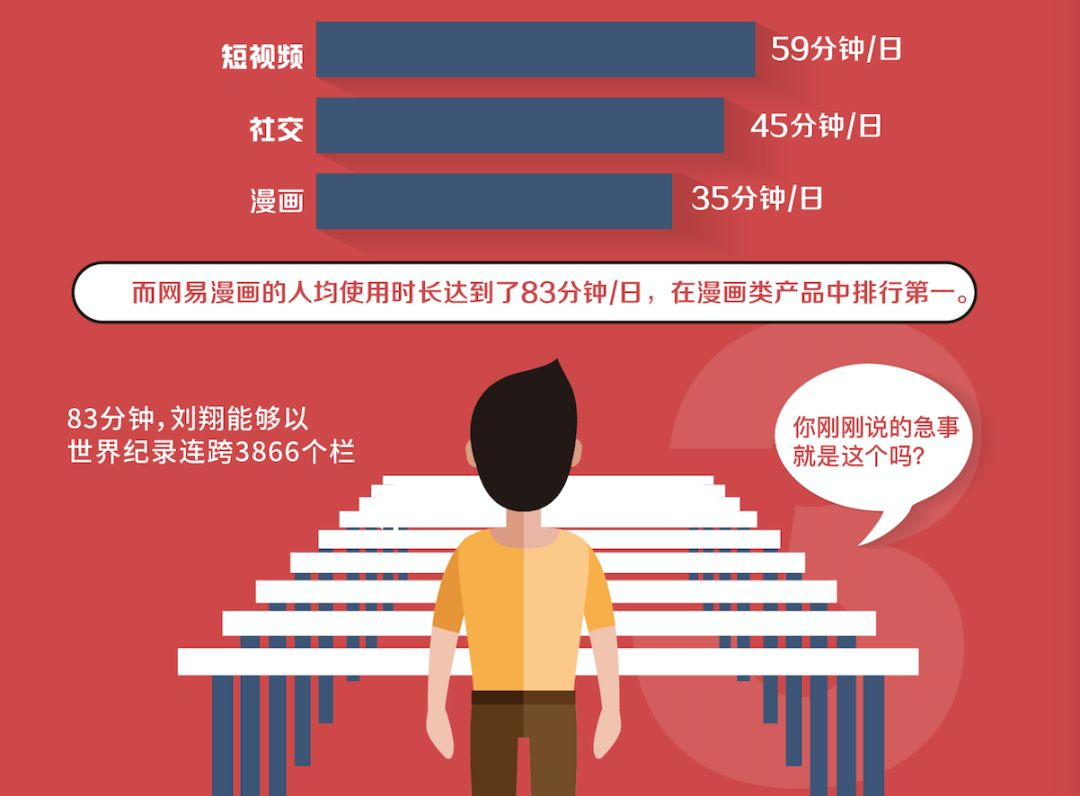 据网易漫画发布的「90,00后二次元用户报告」指出,漫画类APP为90,00后三大常用APP之一,人均使用时长为35分钟/日,而网易漫画的人均时长则达到了83分钟/日,为漫画类产品中排行第一。