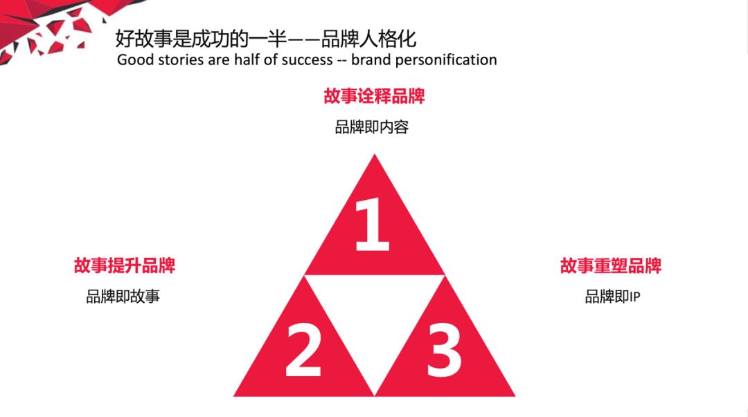 第一阶段,品牌即内容,属于青铜段位。纯粹属于讲清楚自己是谁的操作。第二阶段,品牌即故事,算到了钻石段位。能做到生动而有趣地讲清楚自己是谁。第三阶段,品牌即IP,为最强王者段位。不仅把自己是谁讲生动,还能在听众的脑海中刻下一个清晰的形象,一个有温度、有性格、有血肉的形象,像是一个朋友,需要的时候马上能想到他。