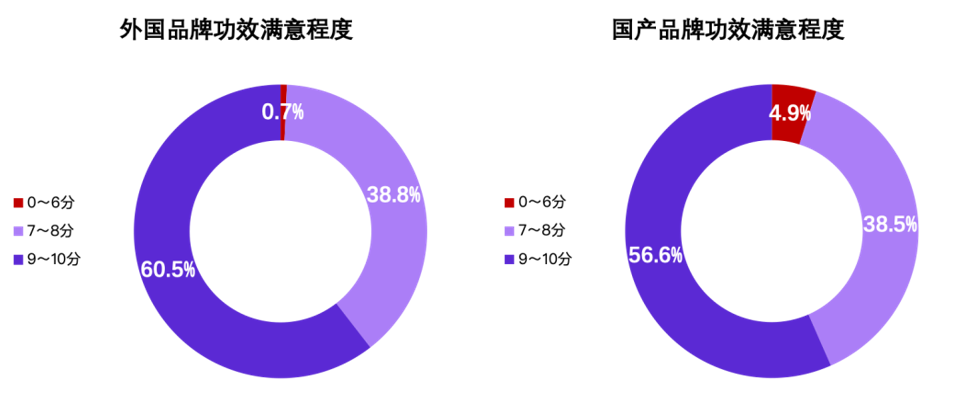 但在功效满意度上,消费者对国产品牌面膜的功效满意度评价不如外国品牌,特别是存在相当一部分对所宣称功效非常不满意的消费者。