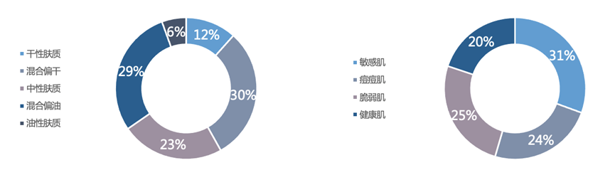 除了问题肌肤的困扰外,消费者也面临不同肌肤类型带来的困扰。数据显示,仅有23%的消费者自认为属于中性肤质。干性、油性和混合各种肤质类型消费者的存在让各大品牌在产品功效功能上进一步细分,推出适用不同肤质的对应产品。