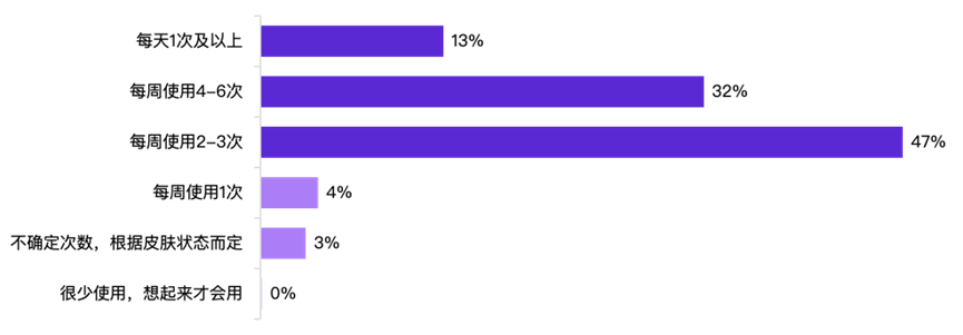 洞察数据显示,93%的消费者每周使用贴片式面膜2次以上,其中45%的消费者使用4次以上,13%的消费者每天坚持使用。