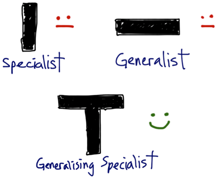 “专才也好,通才也罢,在未来,我们更需要的是二者的结合,T字人才”—语出Ben Kay。没错,越来越多的公司渴求这种综合性人才,因为他们能以更多维度的知识和高效率,解决营销服务中的问题,甚至是独当一面。