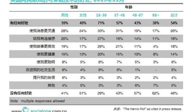 美国网民感知的可穿戴技术的好处[2013]